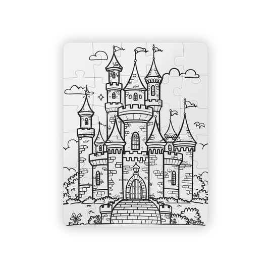 Castle Adventure Coloring Puzzle - Large 30 Piece Jigsaw Puzzle for Kids, Toddlers - Reusable, wipe and recolor with crayons